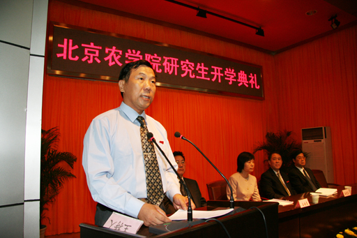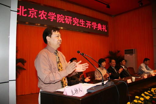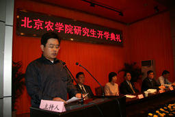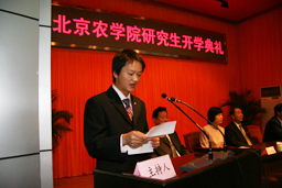 开学典礼在庄严肃穆的国歌声中拉开帷幕。2005级果树学专业研究生王美超代表在校研究生、2006级临床兽医学专业研究生刘京威代表研究生新生、动科系