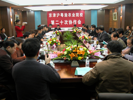 2004年12月23日上午,京津沪粤渝农业院校第二十次协作会在国际交流中心第一会议室隆重开幕。本次协作会的主题是:加强交流、扩大合作、促进发展。