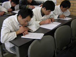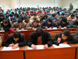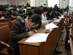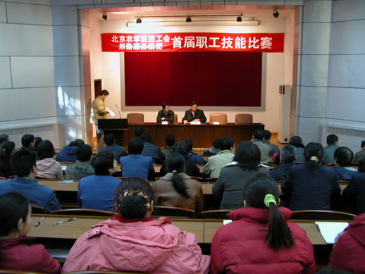 今天下午1:30,后勤服务集团职工技能比赛开幕式在学术报告厅隆重举行,大会由集团副总经理郭洪清主持,杜晓林副院长出席并作了讲话,李晓元总经理对集团员工提出了几点期望并预祝大家春节好。会后集团办公室主任聂萌宣读了考场纪律,随后职工技能比赛理论知识测试部分开始,分别有报告厅和教学楼两个考场。