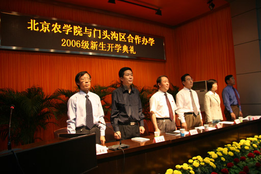 校党委书记孙尧东、党委副书记王晓霞、副校长杜晓林、门头沟区副区长李建军、门头沟区教委副主任王东生、门头沟区招生办副主任王兰等出席开学典礼。各相关系及职能部门的领导和老师、所有2006级新生、部分新生家长、职业技术学院全体教职工参加了典礼。