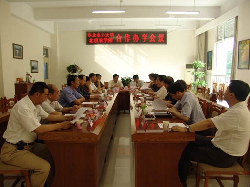 2005年6月6日下午,两校合作办学会议在我校第二会议室召开。我校党委书记孙尧东、院长王有年主持会议。华北电力大学党委书记徐大平、校长刘吉臻、副书记宁文玉、校长助理周成军、孙中权和我院领导罗维忠、王晓霞、王伟、杜晓林、郑一淳、姚允聪及两校的相关部门负责人出席了会议。
