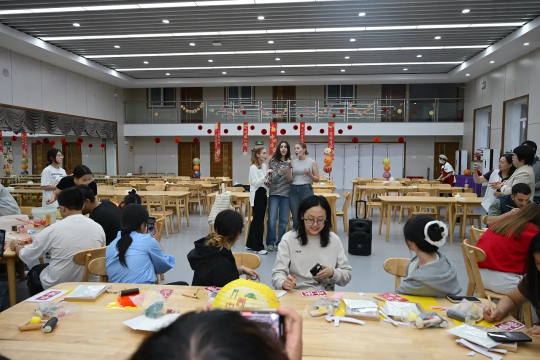在传统手工艺体验环节,同学们或探索色彩的艺术,亲手制作漆扇,或提笔勾勒,于素白脸谱上再现京剧风华;或体验“古韵拓印”,将经典纹样凝于纸端。静品墨香雅趣,绘就栩栩图案,寄托真挚祝福。