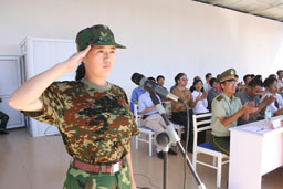 校党委副书记王晓霞在会上作了军训总结发言,她指出,同学们在中国人民抗日战争胜利60周年之际参加军训,是对抗日战争胜利60周年最好的纪念。军训不仅使同学们亲身体验了军旅生活,感受到军人身上的那种军魂与豪气,也使同学们从中更好地体会60年前中华民族那种百折不饶、奋斗到底的坚韧精神,那种不畏强暴、不甘屈辱的牺牲精神。她殷切的希望同学们能将军训精神带到今后的学习和生活中去,不断增强责任意识、增强使命感,脚踏实地,从现在做起,为中华民族伟大复兴而刻苦学习,努力把自己培养成为社会主义事业的合格建设者和接班人,同时为营造北京农学院更加和谐、文明的校园做出自己的贡献。王书记还向在此次军训期间付出了辛勤汗水的基地领导、教官以及所有的带队教师表示了衷心的感谢。