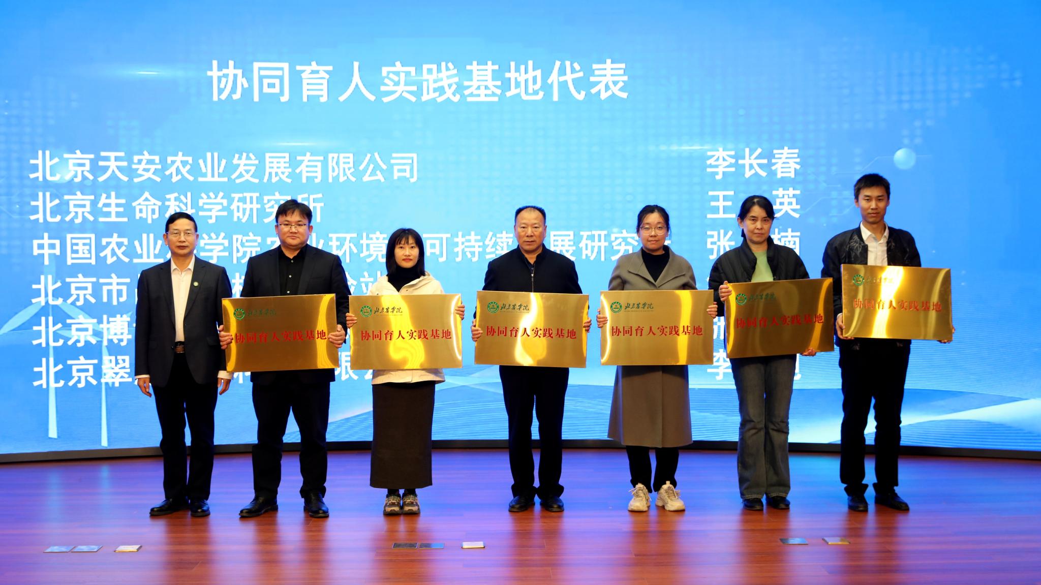 校领导为“北京农学院协同育人实践基地”授牌,标志着校地校企协同育人进入新阶段,为后续共建课程、联合研发、实习就业等实质性合作提供载体,让产教融合从“理念”落地为“行动”。