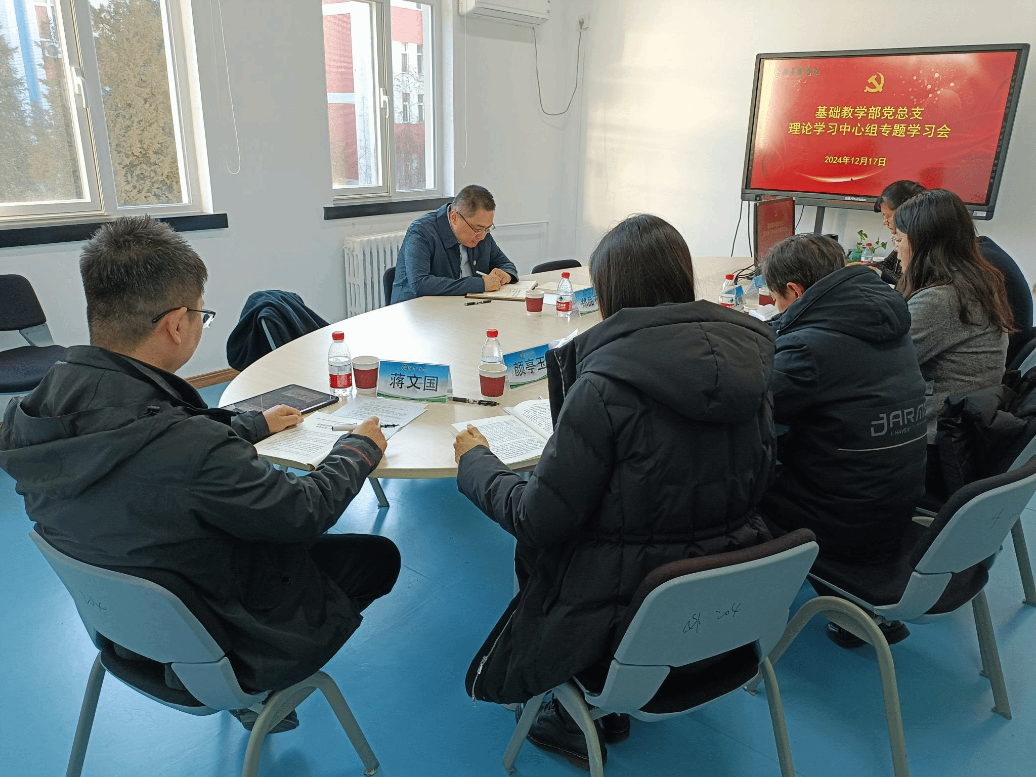 12月17日,基础教学部党总支理论学习中心组专题学习习近平同志《论教育》。校党委副书记郑品石到会督学指导。会议由党总支书记牟玉荣主持,全体中心组成员参加会议。