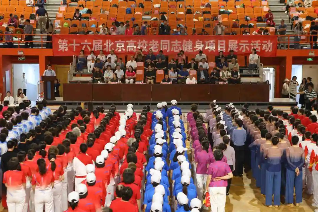 日前,由北京市委教育工委市教委组办的“礼赞新中国 健身乐晚年”第十六届北京高校老同志健身项目展示活动在首都体育学院酷佩体育文化中心举办,来自北京高校的30支队伍、近700名老同志参加了展示活动。