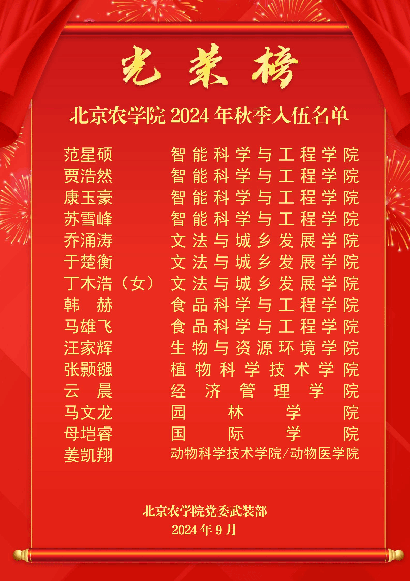 吴君楚代表学校向我校15名即将奔赴军营的同学表示祝贺,关切询问在役前训练期间大家的身体健康和学习成果。他勉励同学们要心怀强军使命、坚定报国信念,在军营服从命令、听从指挥、苦练本领、立志成才,争做有灵魂、有本事、有血性、有品德的优秀士兵。北京农学院永远是大家坚强的后盾,支持大家在军营历练成才。