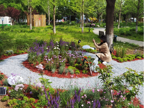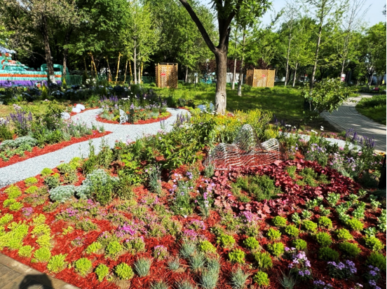 绿意盎然,大地欢歌。4月30日,首都绿化委员会办公室、北京市委社会工作部、北京广播电视台、东城区人民政府共同举办第五届首都市民花园节在龙潭中湖主会场开幕,推动北京花园城市全民共建、共治、共享,让老百姓走进自己亲手打造的专属花园!本届花园节以“你好!花园城市”为主题,邀请广大市民共享绿意盎然之美。由园林学院李金苹、冯丽两位老师带队的两组作品“永续绿荫”“夏日调色盘”成功入围。师生于近日如火如荼地投入花园筹备与建设工作。他们冒雨前行,脸上虽显疲惫,却仍坚定不移,分秒必争,尽全力布置美丽花园。