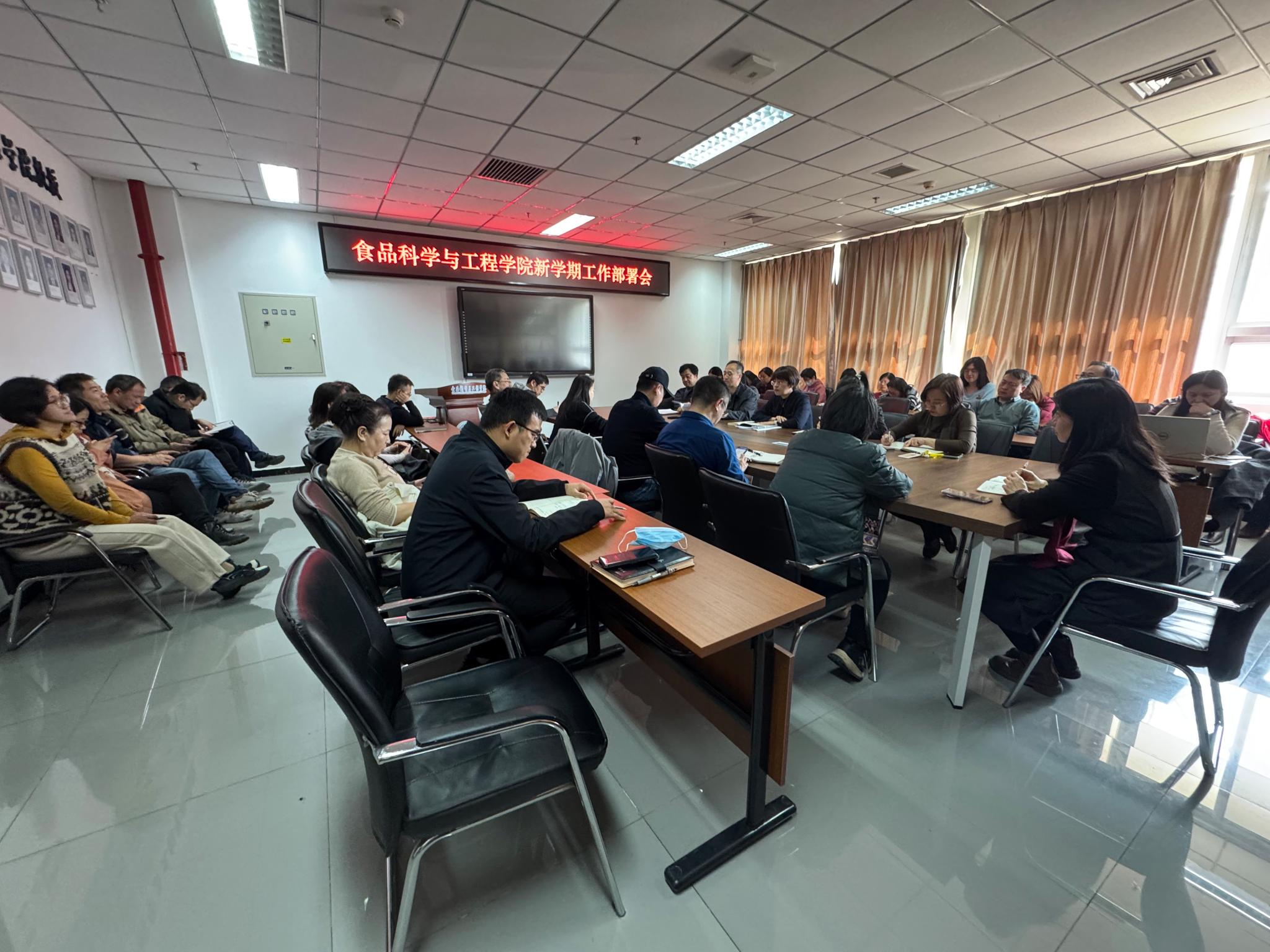 2月28日,食品科学与工程学院召开新学期工作部署会,传达学习学校党委四届四次全会精神和新学期工作部署会精神,部署学院年度重点工作。会议由学院党委书记靳晓熙主持。