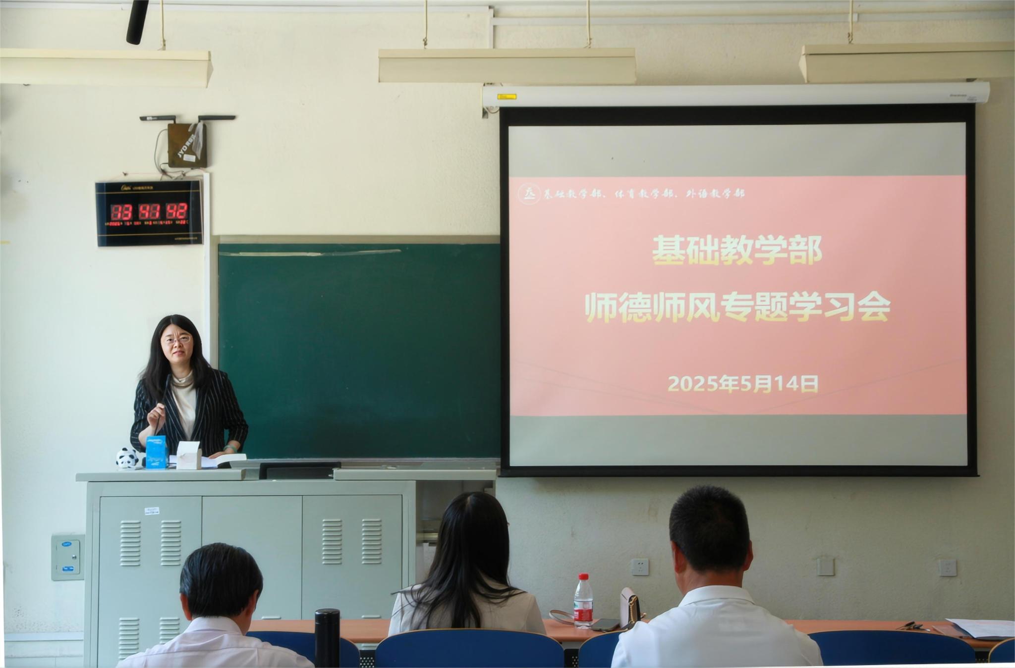 5月14日下午,基础教学部开展师德师风专题学习会暨“讲述我(我们)的育人故事”主题活动。会议由基础教学部副主任孔素然主持。