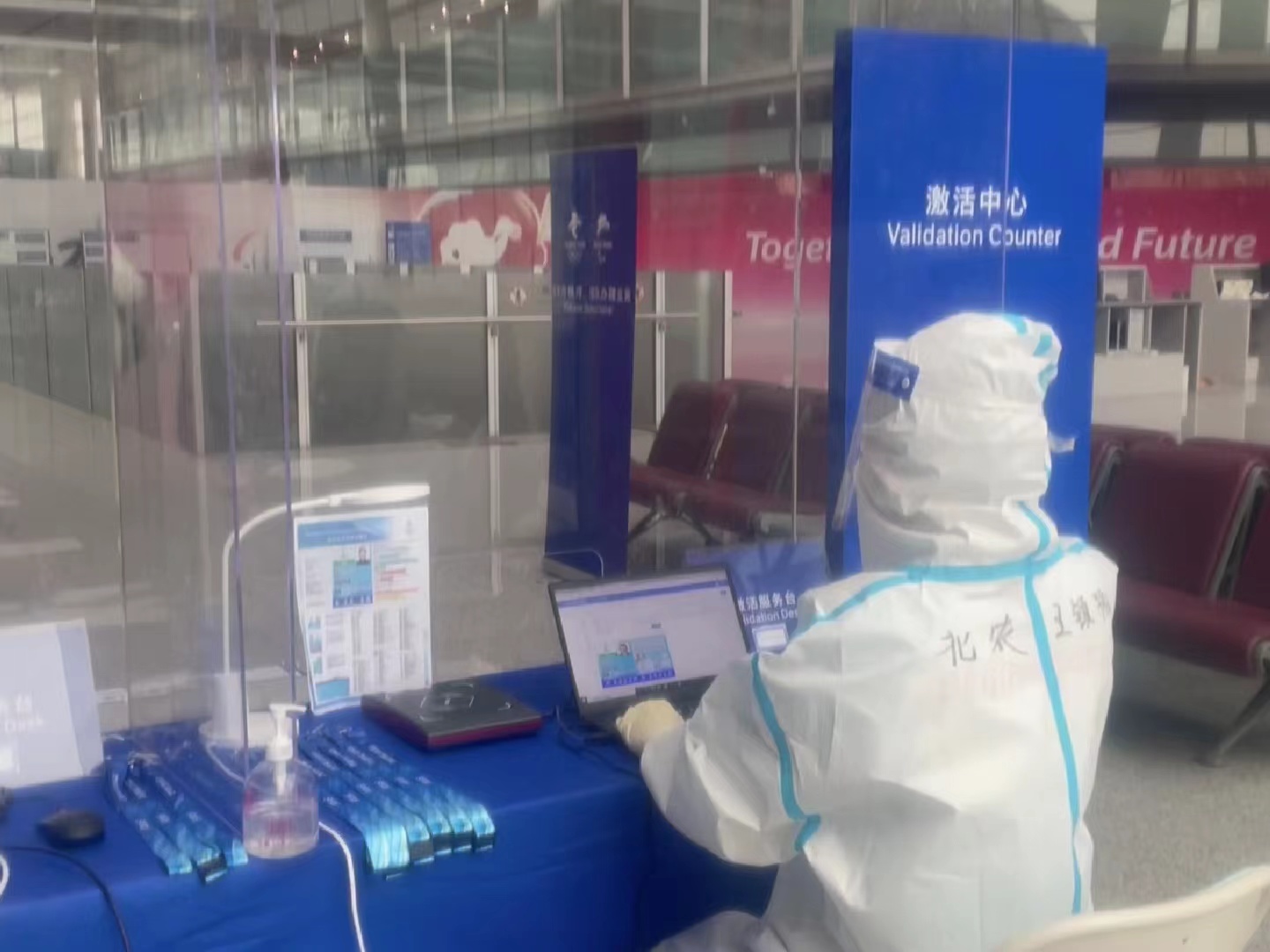 逐渐从一名“小白”,变成注册激活台上的一名“大白”,穿脱防护服是王镇韬和同学们在首都机场工作的首要必修课。