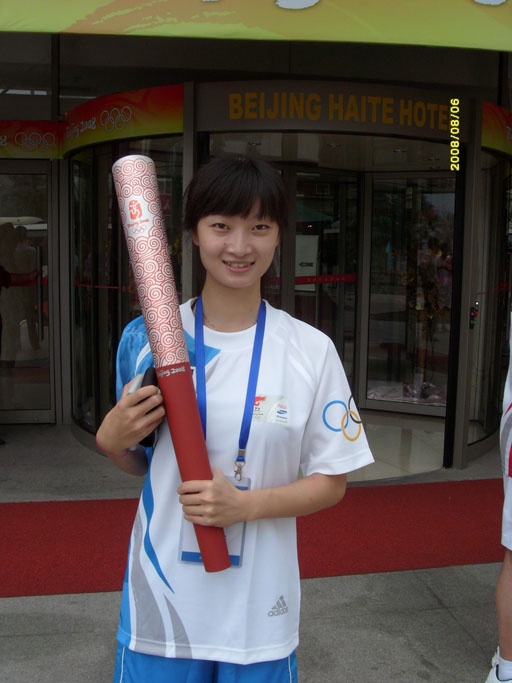 北京奥运会共选拔火炬手21880名,同时选拔5000名护跑手参与到参加火炬传递中。经过层层筛选,毛毛同学成为这光荣的5000人中的一员。护跑手分为安保护跑手和礼仪护跑手,她作为礼仪护跑手,任务是为火炬手、特别是为残疾人火炬手传递圣火时提供服务,并随时准备帮助火炬手完成传递任务。