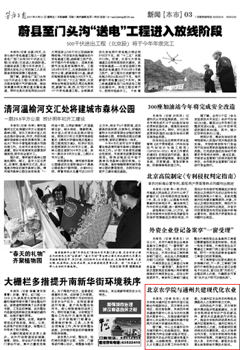 据了解,中心立足通州区作为城市副中心的战略定位,围绕国家现代种业创新试验示范区、国家现代农业示范区建设等重大议题,从战略规划、政策研究、人才支撑以及日常工作协作等方面,为通州区农业和农村转型发展提供人力资源和智力支持。