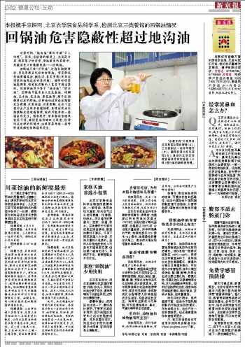 本报携手京探网、北京农学院食品科学系,检测北京三类餐馆的回锅油情况