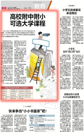 今后,北京有23所高校新建的附中附小学生,将可以选修或体验大学的课程。北京市高校支持附中附小建设协作联盟日前在首师大倡导成立,北航、农大、北外、矿大、首经贸、北京农学院等23所高校成为首批联盟校成员,将在未来着重推进附中附小的建设。