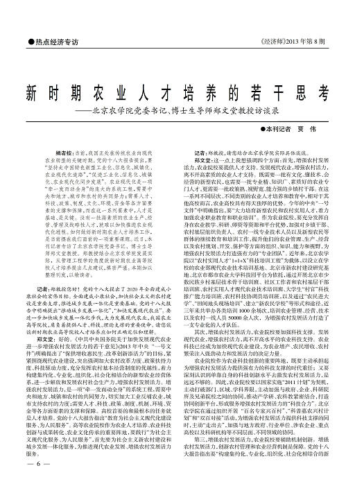 ——北京农学院党委书记、博士生导师郑文堂教授访谈录
