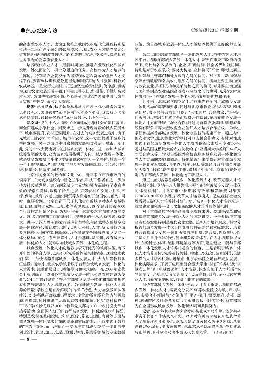 加快首都城乡发展一体化进程,人才至关重要。培养首都城乡发展一体化人才,需要充分发挥高等农业院校与政、产、学、研、金等各个领域的“立体协同”平台作用,需要政府、企业、高校、科研院所及社会各界应共同承担起这一时代重任,为首都率先在全国形成城乡发展一体化新格局而共同努力。