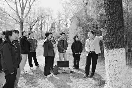 “树木医生”课堂上,学员们跟着老师实地观察诊断。摄影 庞博雅