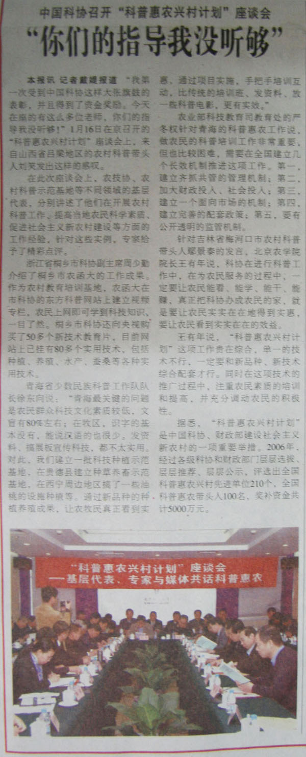 [大众科技报] “你们的指导我没听够”——中国科协召开“科普惠农兴村计划”座谈会