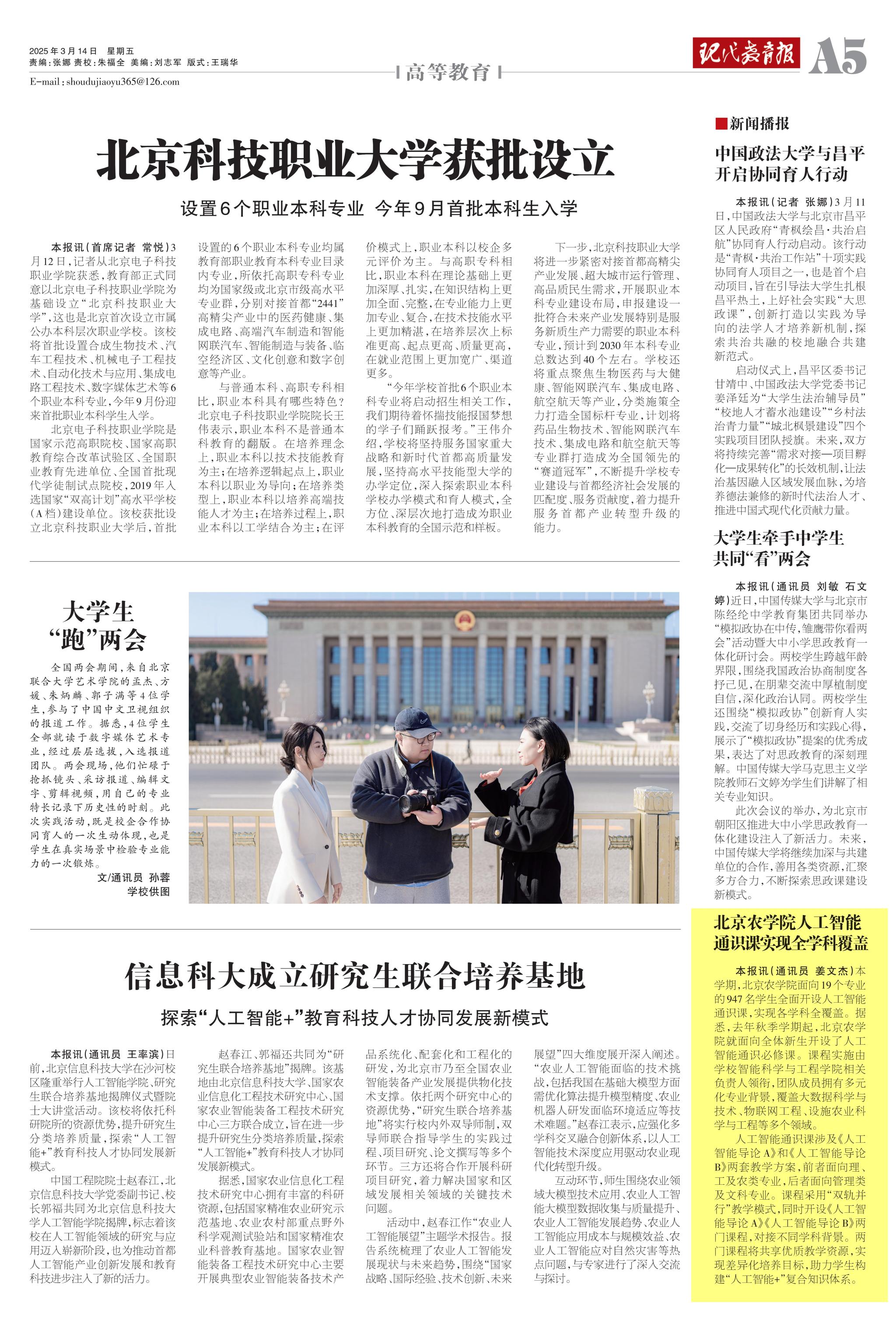 本报讯(通讯员 姜文杰)本学期,北京农学院面向19个专业的947名学生全面开设人工智能通识课,实现各学科全覆盖。据悉,去年秋季学期起,北京农学院就面向全体新生开设了人工智能通识必修课。课程实施由学校智能科学与工程学院相关负责人领衔,团队成员拥有多元化专业背景,覆盖大数据科学与技术、物联网工程、设施农业科学与工程等多个领域。
