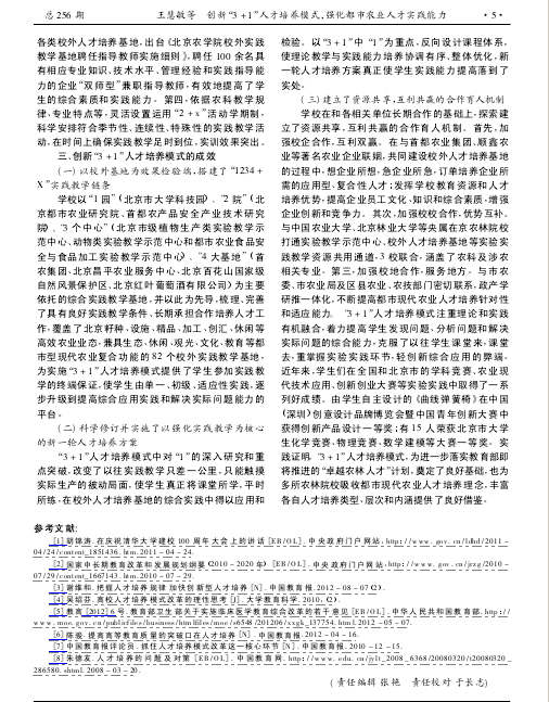 摘要:“3 +1”人才培养模式,是北京农学院适应农业生产实践特点,强化农业高校学生实践能力,培养都市农业应用型复合型人才的改革举措。其内涵是以“卓越农艺师”、“卓越兽医师”培养计划为载体,整体优化课程体系,改革教学内容,将学生全程、多角度、多方位置身于都市现代农业产业链中实践锻炼,促使其主动适应社会,有效提高分析解决实际问题能力。