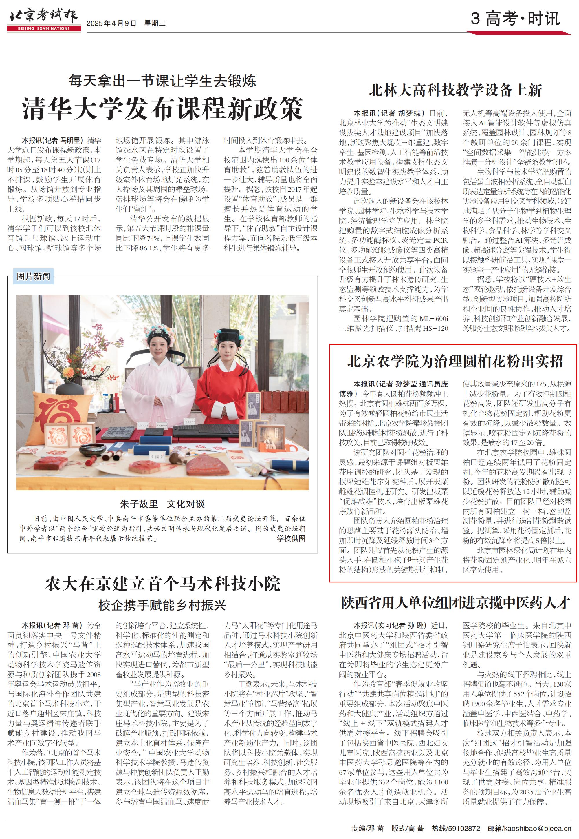 今年春天圆柏花粉频频冲上热搜。北京有圆柏雄株两百多万棵,为了有效减轻圆柏花粉给市民生活带来的困扰,北京农学院秦岭教授团队围绕遏制柏树花粉飘散,进行了科技攻关,目前已取得较好成效。