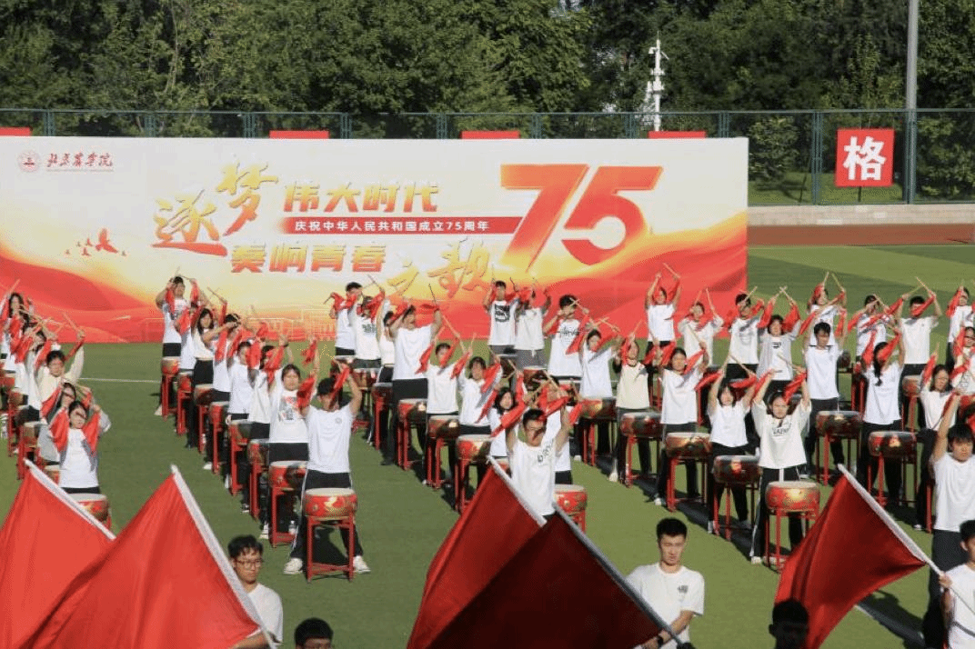 国庆节即将到来之际,北京农学院校园里操场上鼓声和歌声震天,由75位鼓手与12位旗手组成的鼓乐队齐聚操场,奏响铿锵鼓点,献礼新中国75周年华诞。