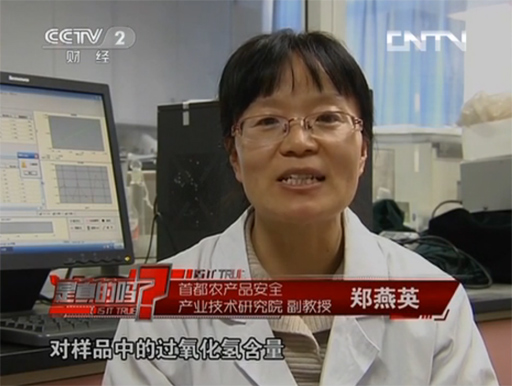 近日,中央电视台财经频道(CCTV2)到我校,就“白色的开心果都是漂白的?”这一主题对我校教师柳振亮、赵建庄和郑燕英进行采访,相关节目报道于5月11日中央电视台财经频道《是真的吗》栏目播出,点击观看: http://jingji.cntv.cn/2013/05/13/VIDE1368431401842355.shtml