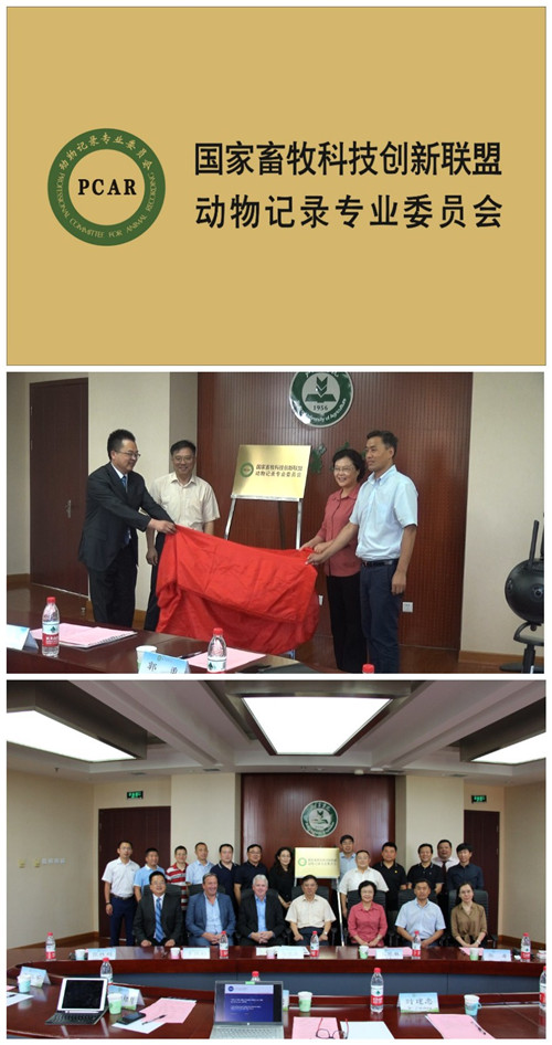随后,在全国畜牧总站时建忠书记、北京农学院王慧敏校长的见证下,国家畜牧科技创新联盟副秘书长卜登攀研究员和专委会秘书长郭凯军教授为动物记录专业委员会揭牌,与会代笔合影留念。