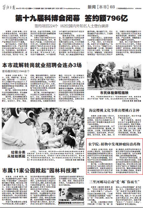 本报讯(记者任洁)北京农学院上周宣布,马兰青教授和窦德泉副教授带领的研究团队从植物罗汉果中发现肿瘤防治药物,可直接杀伤肿瘤细胞,相关知识产权已申请多项国际发明专利和国家发明专利。