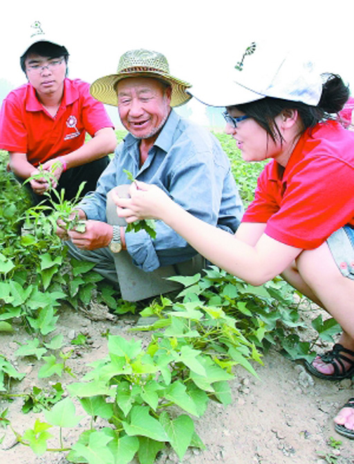7月13日,北京农学院暑期社会实践团的成员,来到该校毕业生、“村官”王贺工作的京郊延庆县康庄镇三街村,体验一日“村官”生活。大学生们通过王贺的介绍,了解到“村官”日常的工作与生活,以及农村的新变化。实践团成员还参加了田地除草、走访农户等实践活动。 (本报记者 王鹰 摄)