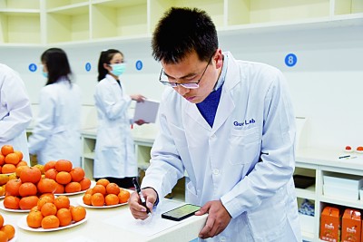 解凯东正在收集果实感官评价数据