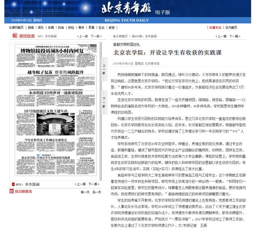 构建以学生收获为目标的实践能力培养体系,是这几年北京农学院一直追求的教学创新目标。北京农学院教务处处长李奕松介绍,近年来,针对首都区域发展需求,根据都市型现代农林业一二三产融合的特点,学校创建实施了三年理论学习和一年实践学习的“3+1”人才培养模式。