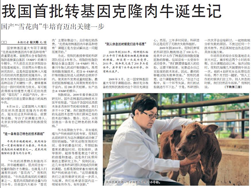 北京农学院的领导还亲自给转基因克隆牛分别起了名字——“京秦1号”和“京秦2号”。