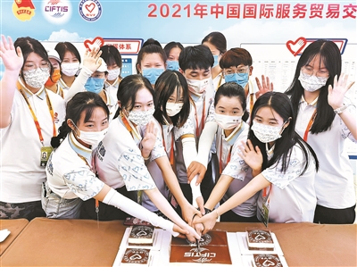 同学们吃上了服贸会定制款蛋糕