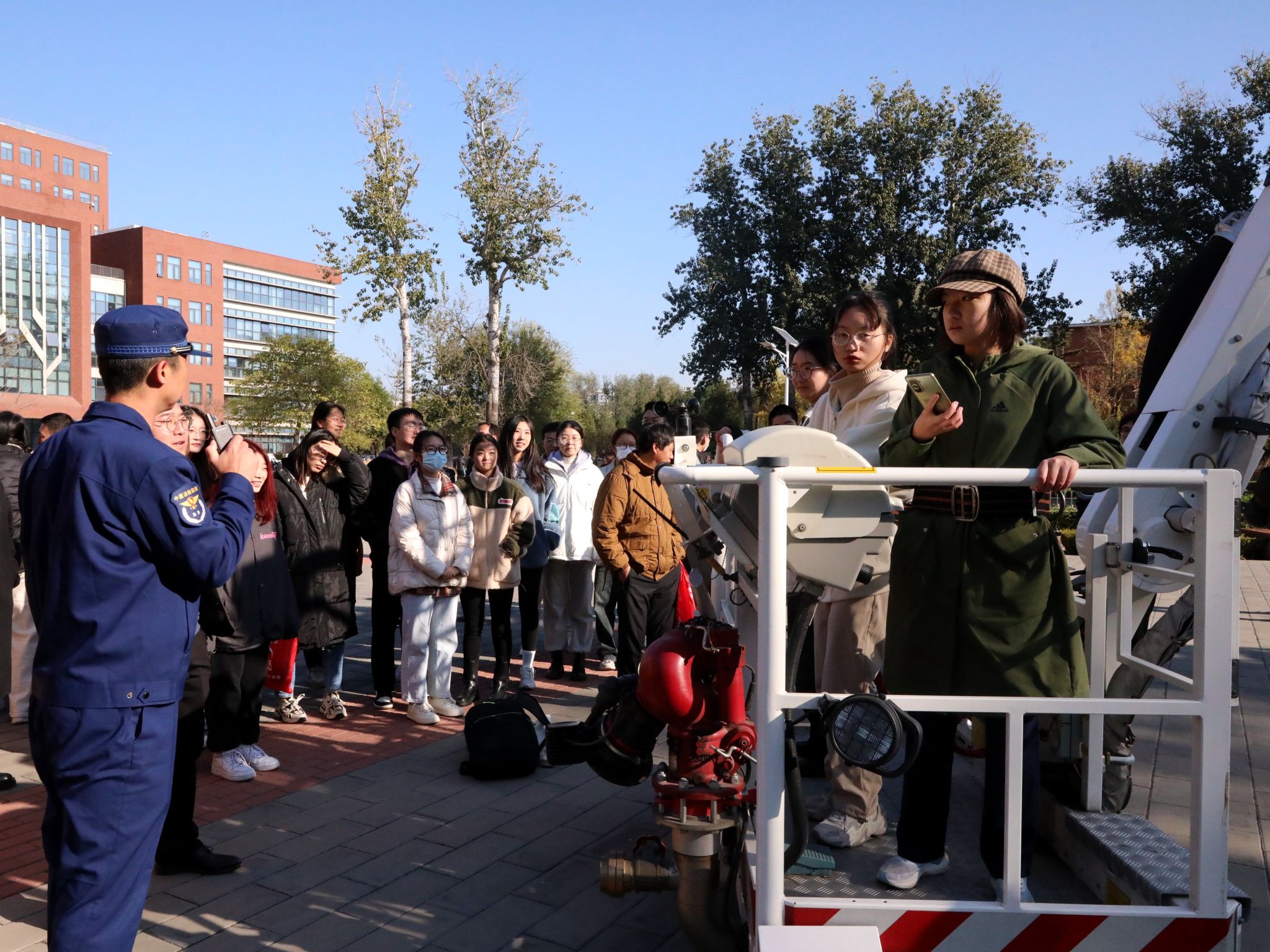 为广泛普及消防安全知识,切实提高师生消防安全素养,学校还组织师生参观了实验室安全知识展览,了解了消防救援特种装备器材的性能、操作方法和用途。大家还登上云梯亲身体验高空救援的过程,感受消防救援人员的辛苦与不易。