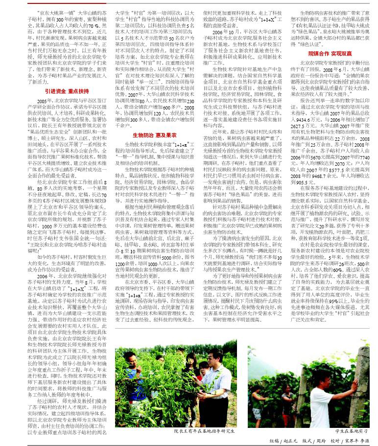 【首都教育】科技支农 服务惠农 发展强农--北京农学院支持苏子峪村果木发展纪实