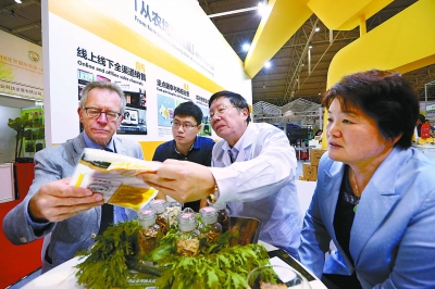 昨天,在2016北京国际农业农产品展览会上,北京农学院动科系应用传统医学保健理论生产的健康农产品受到外国专家教授的关注。 本报特约摄影 孙山 |