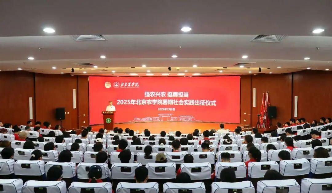 7月9日下午,北京农学院举行2025年暑期社会实践暨师生服务乡村振兴行动出征仪式。学院党委书记赵锋出席仪式并为师生上乡村振兴“大思政课”。校相关职能部门及二级学院负责人、实践团师生代表参加出征仪式。