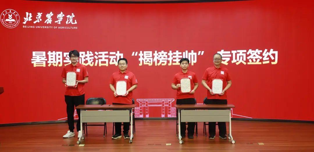 出征仪式上,我校延庆区小浆果科技小院指导教师黄体冉、密云区古树文化研究教授工作站指导教师黄凯与“揭榜挂帅”社会实践专项代表签约。师生表示,将充分发挥学科专业优势,以实干实绩助力乡村全面振兴。