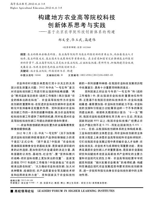 农业和农村问题历来是我们党十分关注的关系国计民生的重大问题。2012 年中央“一号文件”首次对农业科技创新工作进行突出强调和战略部署,“两会”期间温家宝总理的《政府工作报告》再次强调“农业的根本出路在科技”。农业高等院校作为农业科技创新的重要阵地,在促进农业科技创新和农业成果党和国家对农业科技创新工作的一系列的部署和措施,既为农业高等院校科技创新工作提供了难得的机遇,同时也是对农业高等院校科技创新工作提出的新的使命和要求。