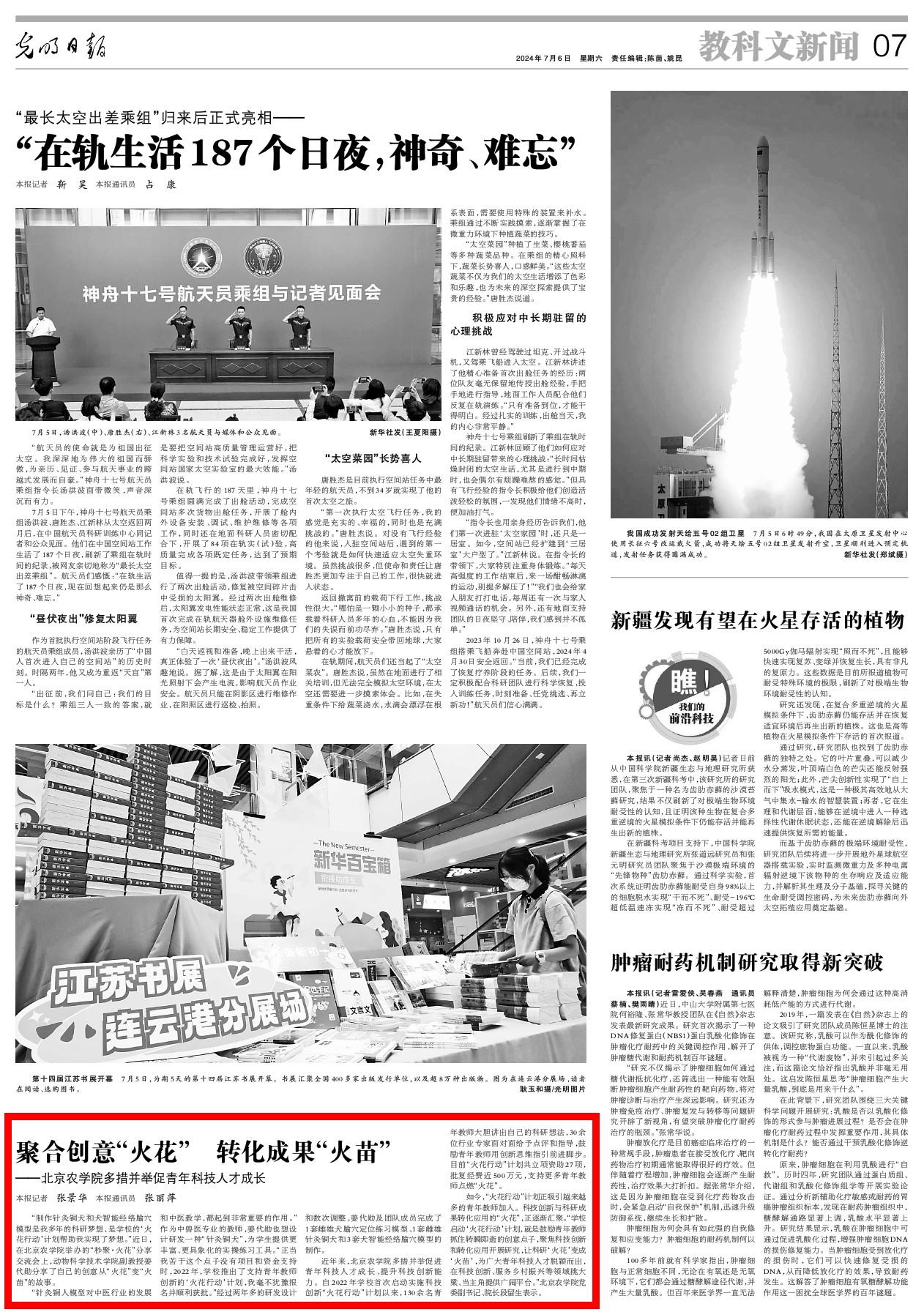 如今,“火花行动”计划正吸引越来越多的青年教师加入。科技创新与科研成果转化应用的“火花”,正逐渐汇聚。“学校启动‘火花行动’计划,就是鼓励青年教师抓住转瞬即逝的创意点子,聚焦科技创新和转化应用开展研究,让科研‘火花’变成‘火苗’,为广大青年科技人才脱颖而出,在科技创新、服务乡村振兴等领域挑大梁、当主角提供广阔平台。”北京农学院党委副书记、院长段留生表示。