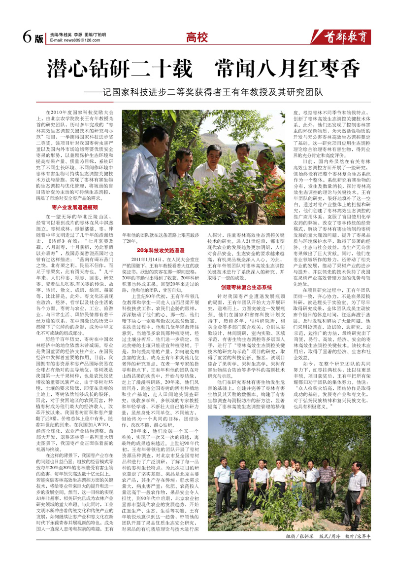 潜心钻研二十载常闻八月红枣香——记国家科技进步二等奖获得者王有年教授及其研究团队