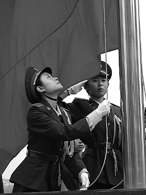 “国旗班的磨炼使我们从柔弱的独生女蜕变成了勇敢的护旗战士。”谈起国旗班的收获,这些花季女孩不约而同地说道。“在接近零度的天气里,大家都不能戴手套,手都冻成了紫红色;夏天的太阳照得眼睛都睁不开,穿着厚厚的军装一站就是一小时。”第九届国旗班战士刘洋回忆说。