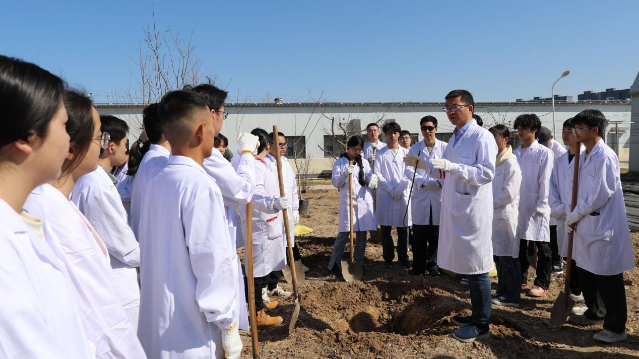 “春季果树种植有几个技术要点,大家一定要注意,一是要将果树苗木有病虫害的根系剪除,在定植前对根系进行消毒;二是定植后要浇足水,让土壤与根系充分接触,提高成活率。”春日的阳光洒在生机勃勃的校园中,同学们认真听老师讲解知识要点,不时记录着,生怕错过关键信息。