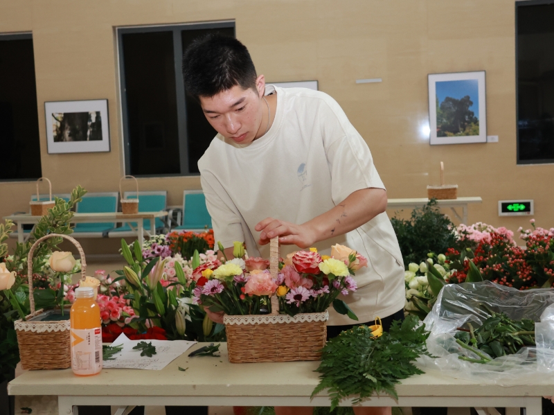 在侯老师的指导下,同学们精心挑选寓意美好的康乃馨、满天星、玫瑰、百合等花卉,制作成花篮和花束。“这是一次难忘的专业实践活动,我运用在插花艺术课堂上学到的色彩、形态、比例、构图等知识制作了十几束花,表达我对老师们的感谢,希望老师们能感受到我们的心意。”一位参与活动的学生说道。“学生亲手设计和制作的花有着不一样的意义。”收到这份暖心礼物的老师们表示很幸福。