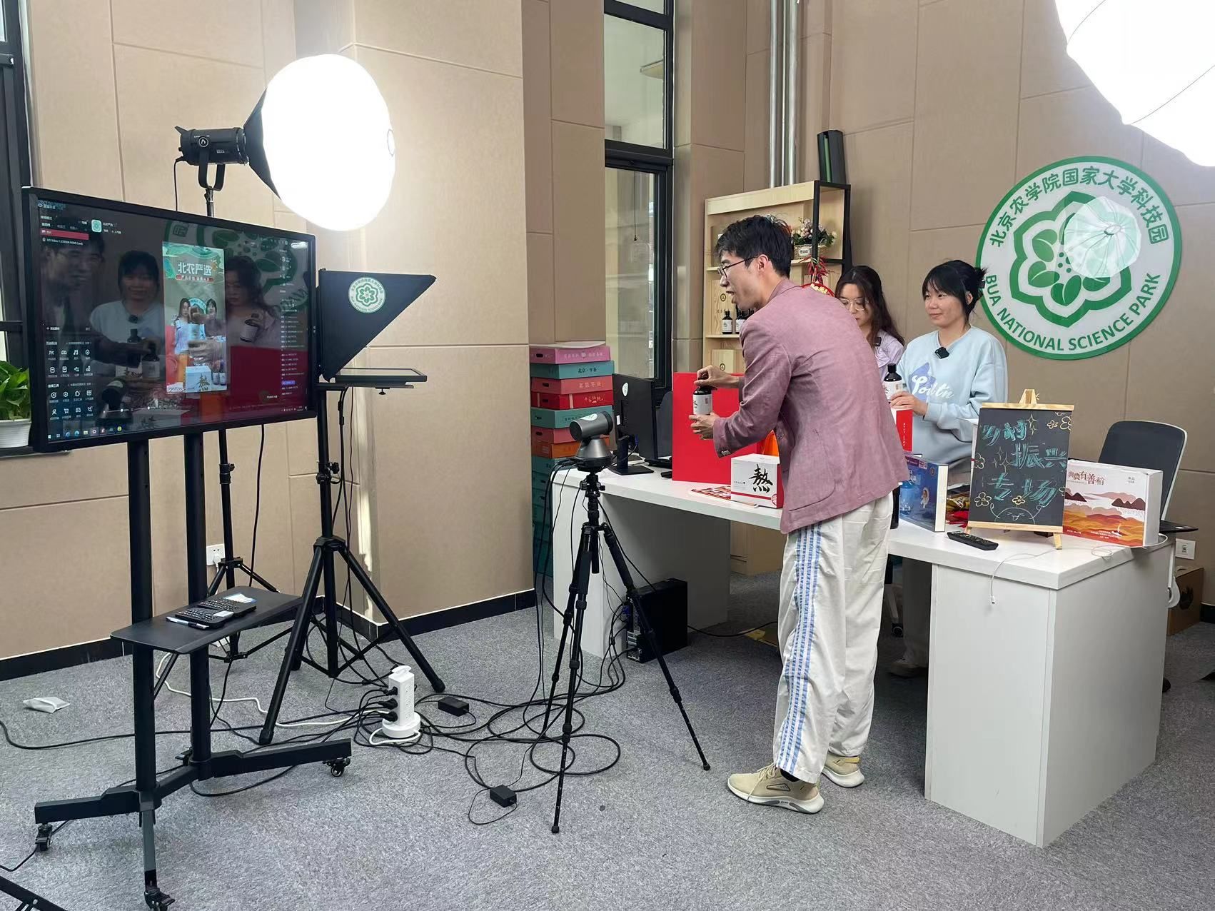 北京农学院国家大学科技园内,学生团队尝试进行网络直播带货服务乡村振兴。新京报记者 冯琪 摄