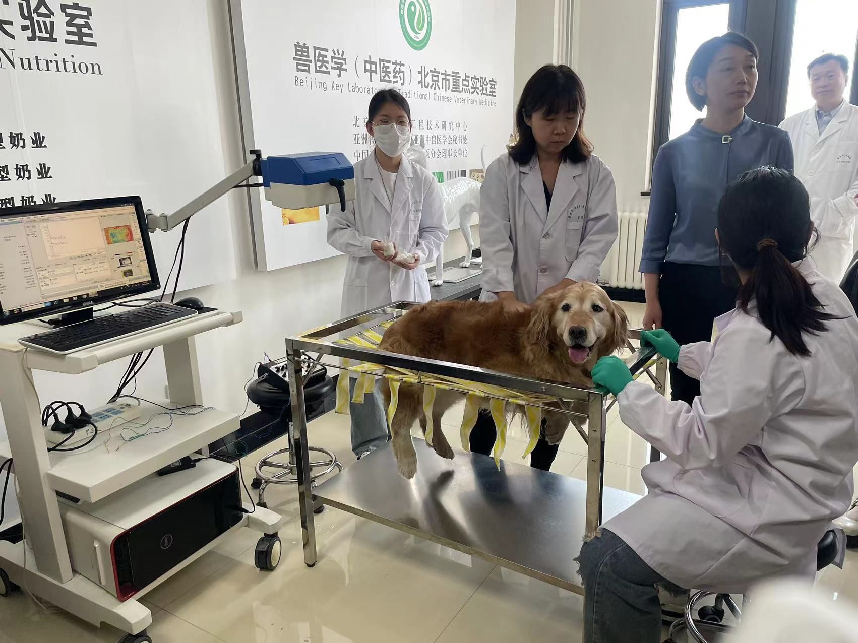 学校兽医学(中医药)北京市重点实验室,团队成员在为导盲犬做针灸治疗。新京报记者 冯琪 摄