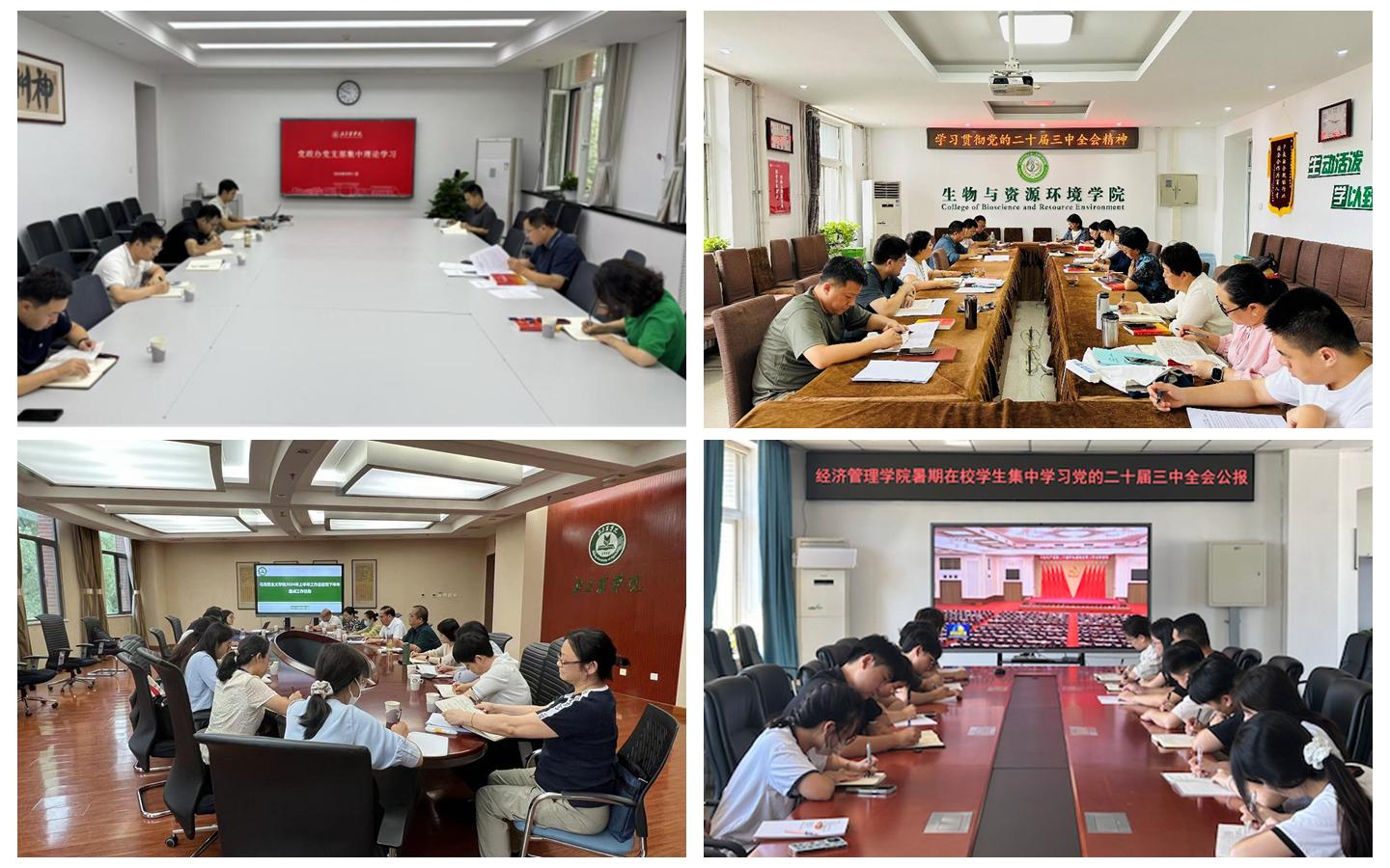 按照中央和市委的统一部署和要求,学校党委第一时间组织开展专题学习,及时研究制定《中共北京农学院委员会关于认真学习宣传贯彻党的二十届三中全会精神的实施方案》,校领导带头、各级党组织和广大党员干部师生积极跟进,以高度的政治自觉、思想自觉和行动自觉,迅速掀起学习宣传贯彻党的二十届三中全会精神热潮。
