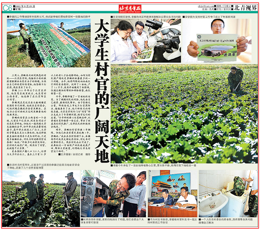 李鹏2010年毕业于北京农学院,他没有在城里就业,也没有回山西老家,他选择了在北京郊区当村官。